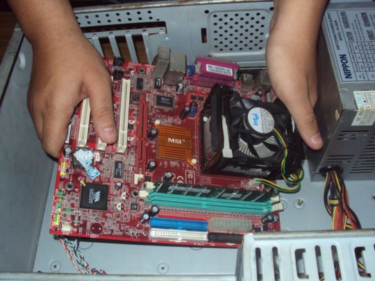 - Siapkan casing komputer, pasang motherboard ke dalam casing.