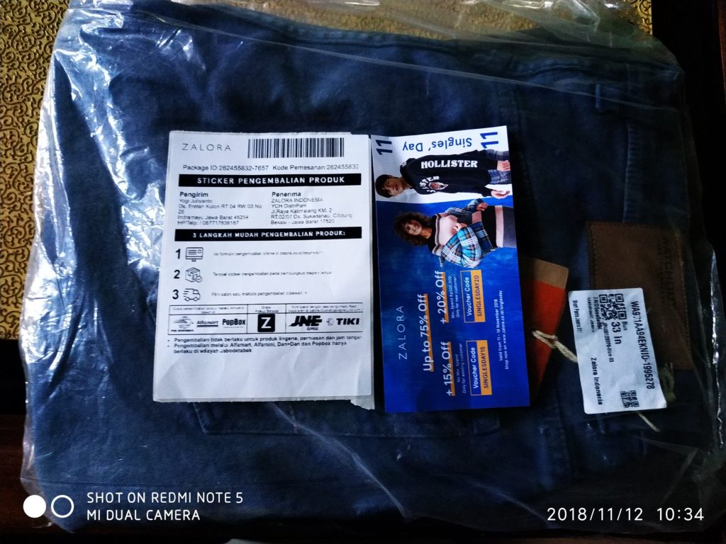 Hi disini saya mencoba berbagi ulasan pertama kali saya belanja online di zalora tapi sebelumnya saya sih sering banget belanja online di marketplace lain seperti Lazada, bukalapak, tokopedia dan JD.id. Disini saya membeli sebuah pakaian ya celana jeans celana panjang dan pendek. Saat itu saya belanja hari jum’at 2018-11-09 dan dapat diskon pula dizalora dengan harga sangat murah berikut ini gambar dibawah: