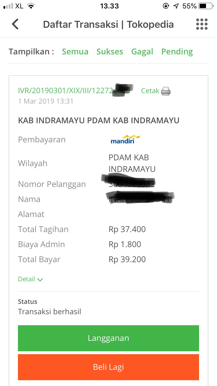 - Jika sudah melakukan pembayaran anda akan mendapatan pemberitahuan dari tokopedia transaksi berhasil dibayar.