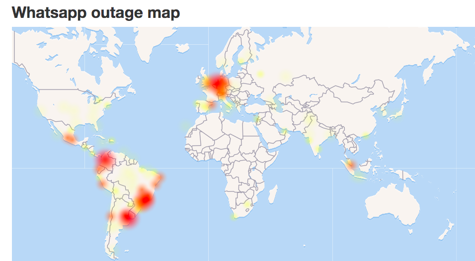 Sementara untuk WhatsApp, laporan yang masuk ke Down Detector paling banyak berasal dari negara-negara Amerika Latin: Brasil, Argentina dan Kolombia. Sementara Indonesia dan Malaysia turut mengeluhkan masalah serupa. Begitu pula dengan layanan Facebook.