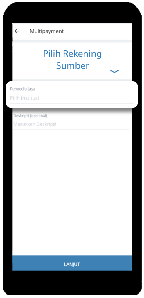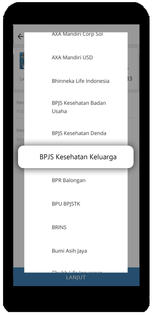 Tentukan Rekening Sumber yang akan anda pakai lalu tap isian Penyedia Jasa. - Pilih Penyedia Jasa “BPJS Kesehatan Keluarga”