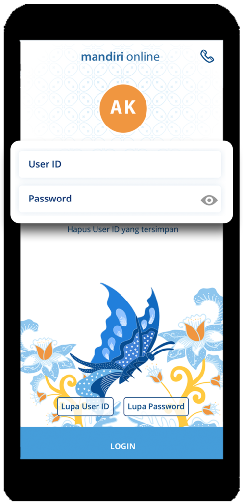 - Login di aplikasi Mandiri Online