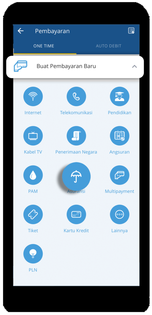 Tap di menu Buat Pembayaran Barukemudian pilih Asuransi. - Tentukan “Sumber Rekening” dan “Penyedia Jasa”