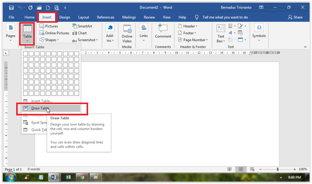 Saat memasukkan data di tabel, sering kali jumlah kolom dan baris kurang atau lebih. Microsoft secara default memungkinkan Anda untuk bisa menambah atau menghapus tabel. Berikut caranya: