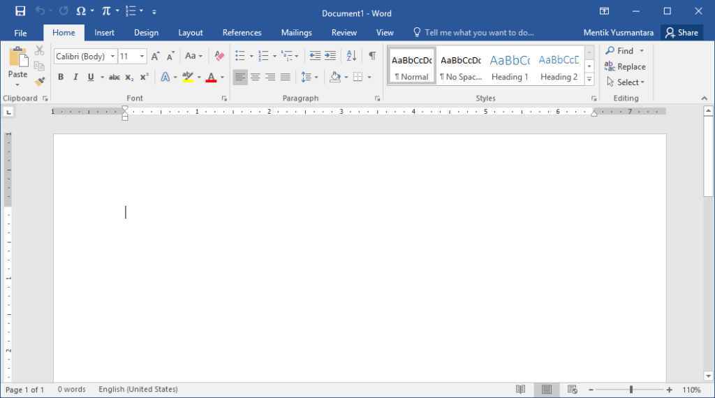 Berikut ilustrasi untuk antar muka dari aplikasi Microsoft Word,