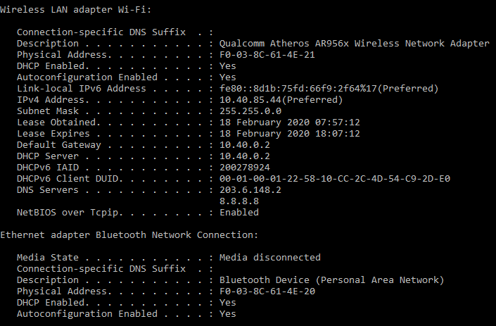 Nantinya, alamat IP akan terlihat pada baris IPv4 Address.