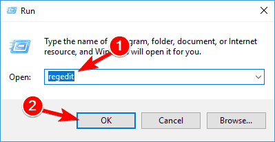 - Tekan Windows Key + R, ketik regedit di kotak pencarian lalu tekan enter.