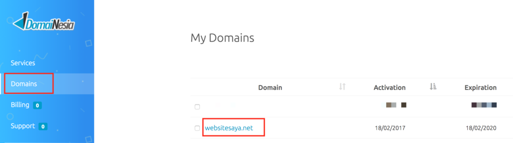 Step kedua, silakan pilih domain yang ingin diarahkan ke server VPS. Klik nama domain tersebut.