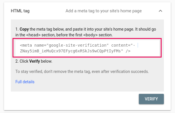 Untuk HTML tag, kamu bisa copy script di tiap halaman atau langsung di website tersebut. Untuk menambahkan HTML tag pada tiap-tiap halaman, silakan paste script di masing-masing artikel yang kamu post. Meta tag tersebut berada di dalam section setelah <head> dan sebelum <body>