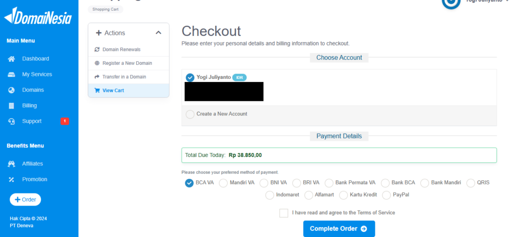 Terakhir kamu pilih metode pembayaran, setelah selesai metode pembayaran jangan lupa klik “I have read and agree to the Terms of Service” dan Complete Order.