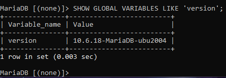 Pertama, cek dulu versi MariaDB yang ada di server kamu. Caranya gampang, tinggal ketik ini atau copas di cli: