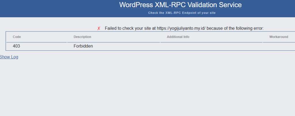 Untuk mengecek aktif tidaknya xmlrpc.php di situs, gunakan tool XML-RPC Validator. Buka situs Anda melalui tool tersebut, dan jika pesan error muncul, maka itu berarti tidak ada XML-RPC yang diaktifkan. Sebaliknya, jika Anda mendapatkan pesan ‘berhasil’, maka sebaiknya matikan file xmlrpc.php dengan dua cara berikut ini: