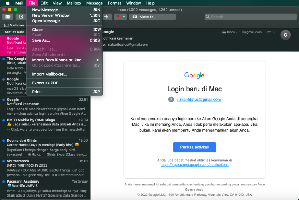 Apple Mail merupakan apikasi email default di sistem operasi macOS. Email client ini memungkinkan kamu mengelola banyak akun email, seperti iCloud, Gmail, AOL, dan lainnya.