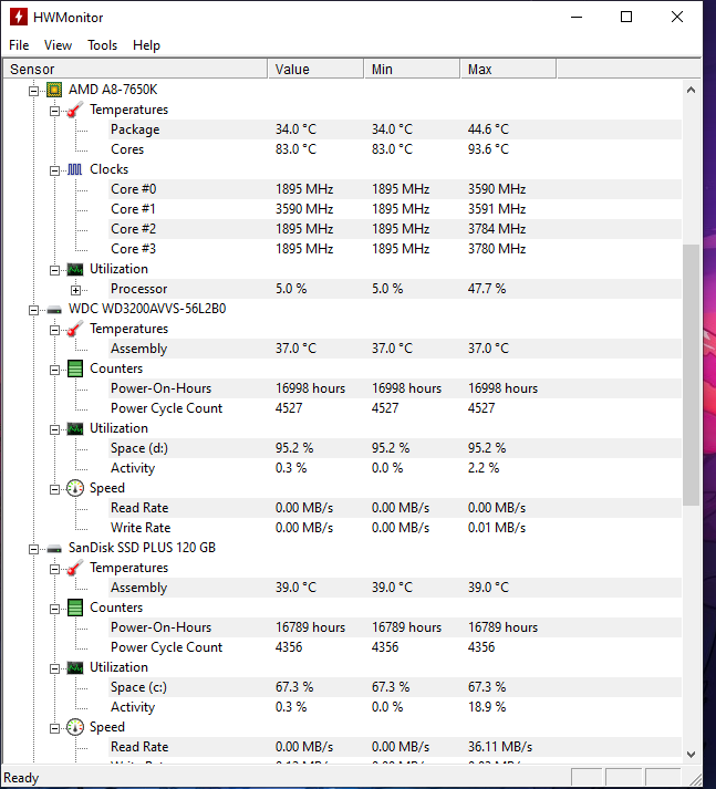 Saat menjalankan aplikasi atau game yang lebih berat, kisaran suhu normalnya antara 70–80 derajat Celsius. Yang perlu diwaspadai, apabila suhu sudah mencapai 80-85 derajat Celsius atau lebih tinggi. Jika tidak dalam keadaan menjalankan aplikasi yang berat, namun suhu mencapai lebih dari 80 derajat Celsius, maka mungkin saja hal tersebut mengindikasikan terjadinya masalah yang serius.
