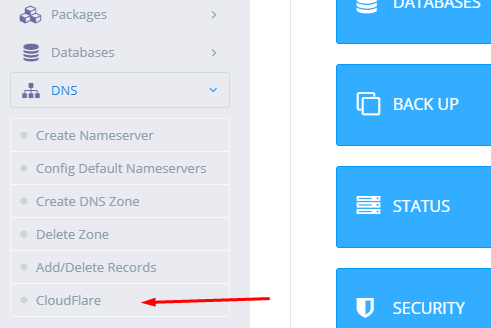 Dari versi v1.9.5 dan seterusnya, kamu dapat menggunakan integrasi Cloudflare dengan masuk ke menu DNS-> Cloudflare.