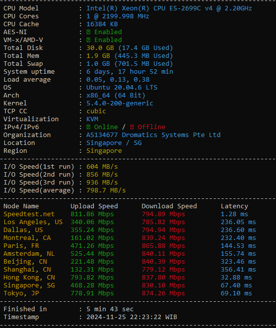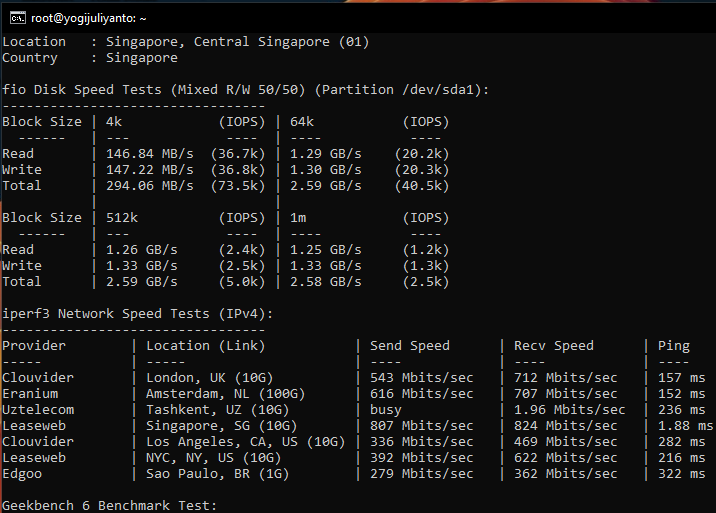 Saya akan sertakan gambar gambar hasil pengujian vps ini dan ini dijadikan production untuk 2 website aja, berikut ini skrinsutnya :