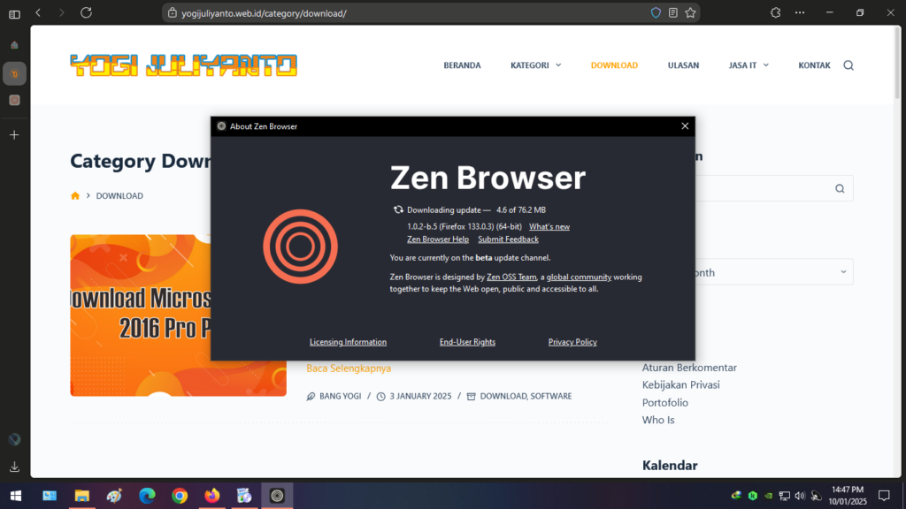 Ketika saya menggunakan Zen Browser versi Beta tetapi Zen Broswser belum tersedia versi stabilnya dan dulunya project ini versi alpha.