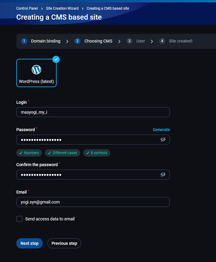 - di proses terakhir ini kamu menunggu proses intall wordpress di fastpanel, nanti jika selesai fastpanel akan mengirimkan informasi rincian akun wordpress kamu ke email kamu.