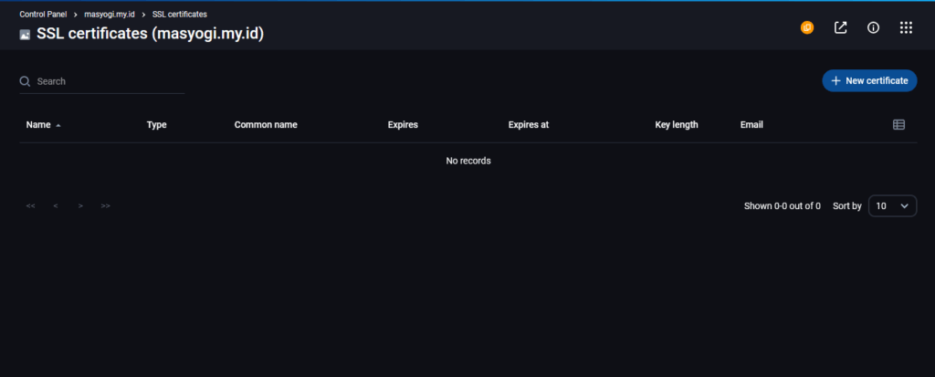 - Install SSL sangat mudah kamu klik menu SSL certificates, dan klik New Certificate.