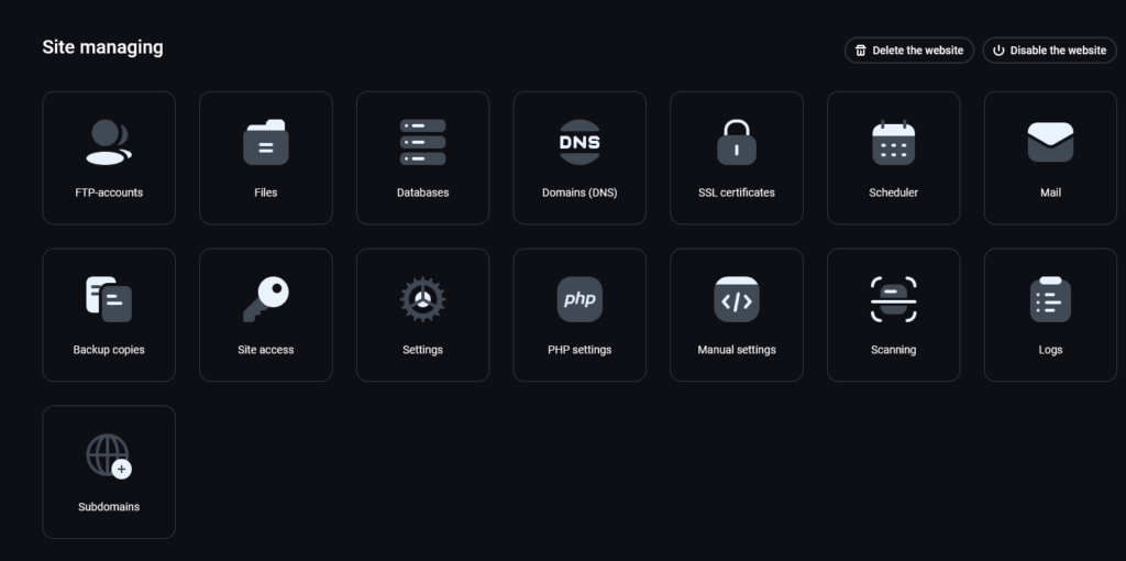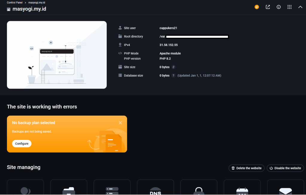 - Proses bikin website sudah selesai berikut ini UI fastpanel website yang kamu buat serta rincian dan menu untuk mengolala website data.