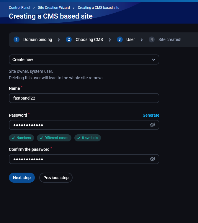 - Login fastpanel.