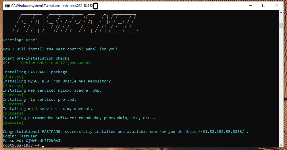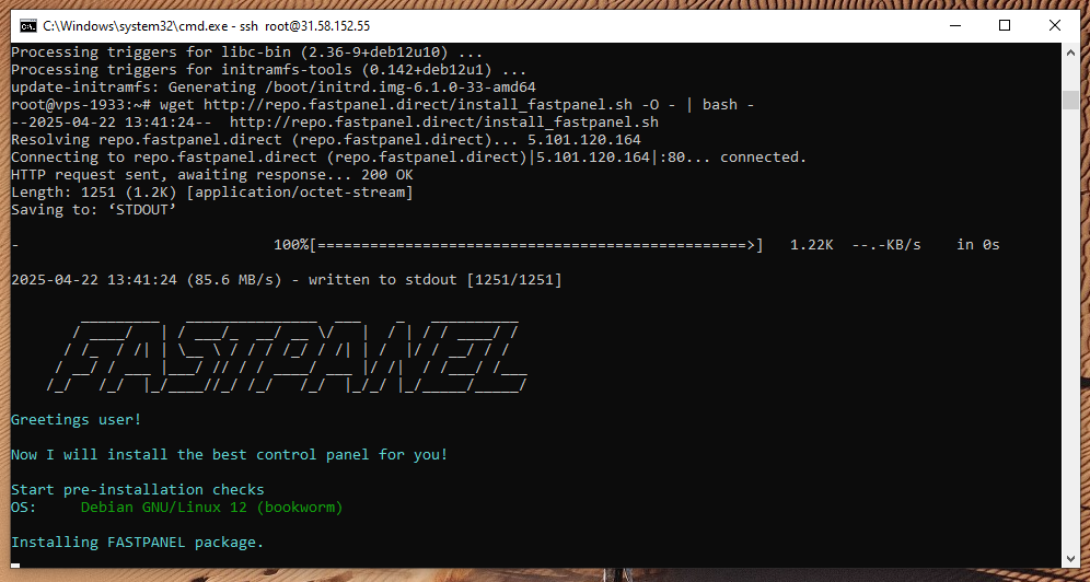 - Selanjutnya jalankan perintah instalasi FastPanelnya.