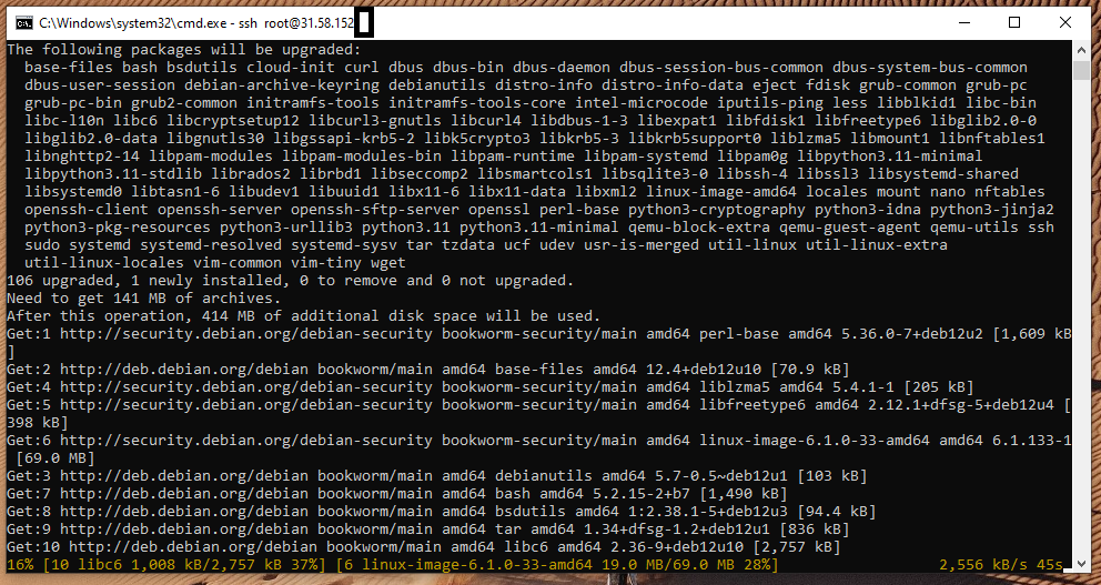 - Setelah berhasil login ke VPS, lakukan update dan install wget dengan menjalankan perintah berikut: